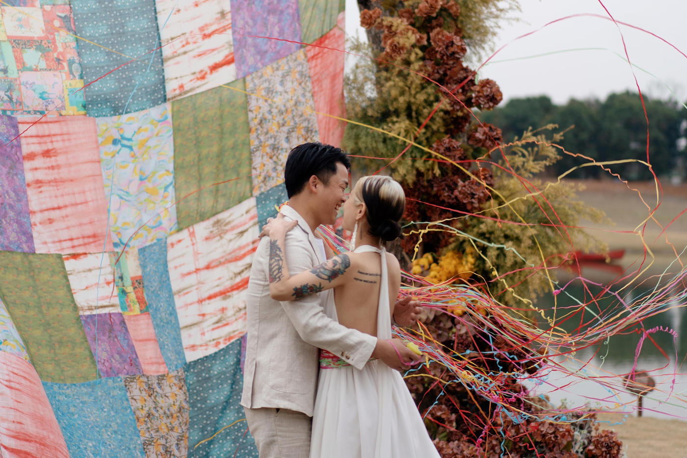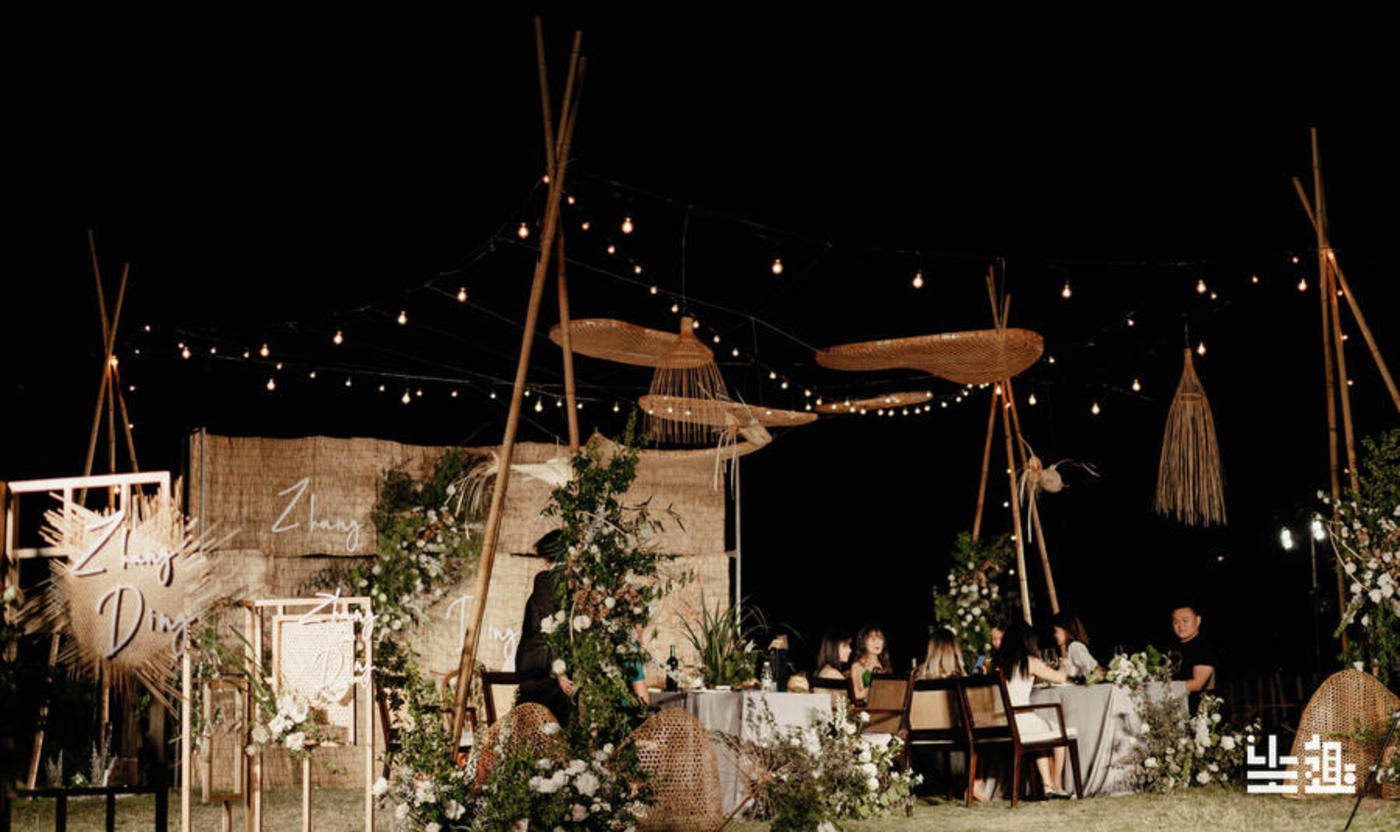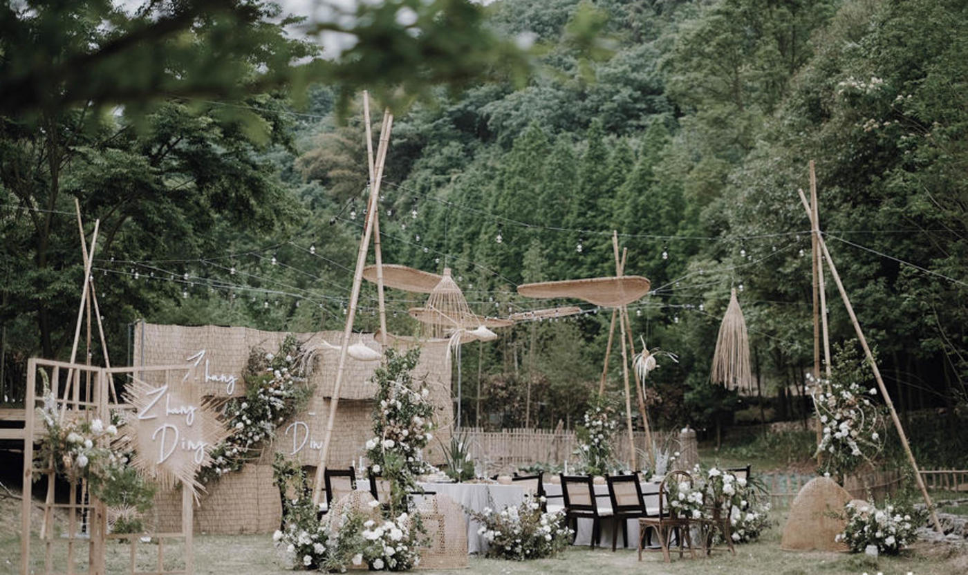 #私奔婚礼# 高温暴晒直逼40的温度,在大山里完成了今天的『竹里』,坐在一旁的草垛上听着钟爱的卡朋特,穿着小绿的丁丁在席间蹦蹦跳跳的和好友合照,驰哥经典的蘑菇头。对比白天的温度,夜里现在的体感真的不要太幸福了。第一次手动体验了竹筏,原来也远没有眼睛看到的平静感,想来一口杨枝甘露。 生趣•私奔婚礼•崇州历空山 本场婚礼布置花费2.6w[更多…]