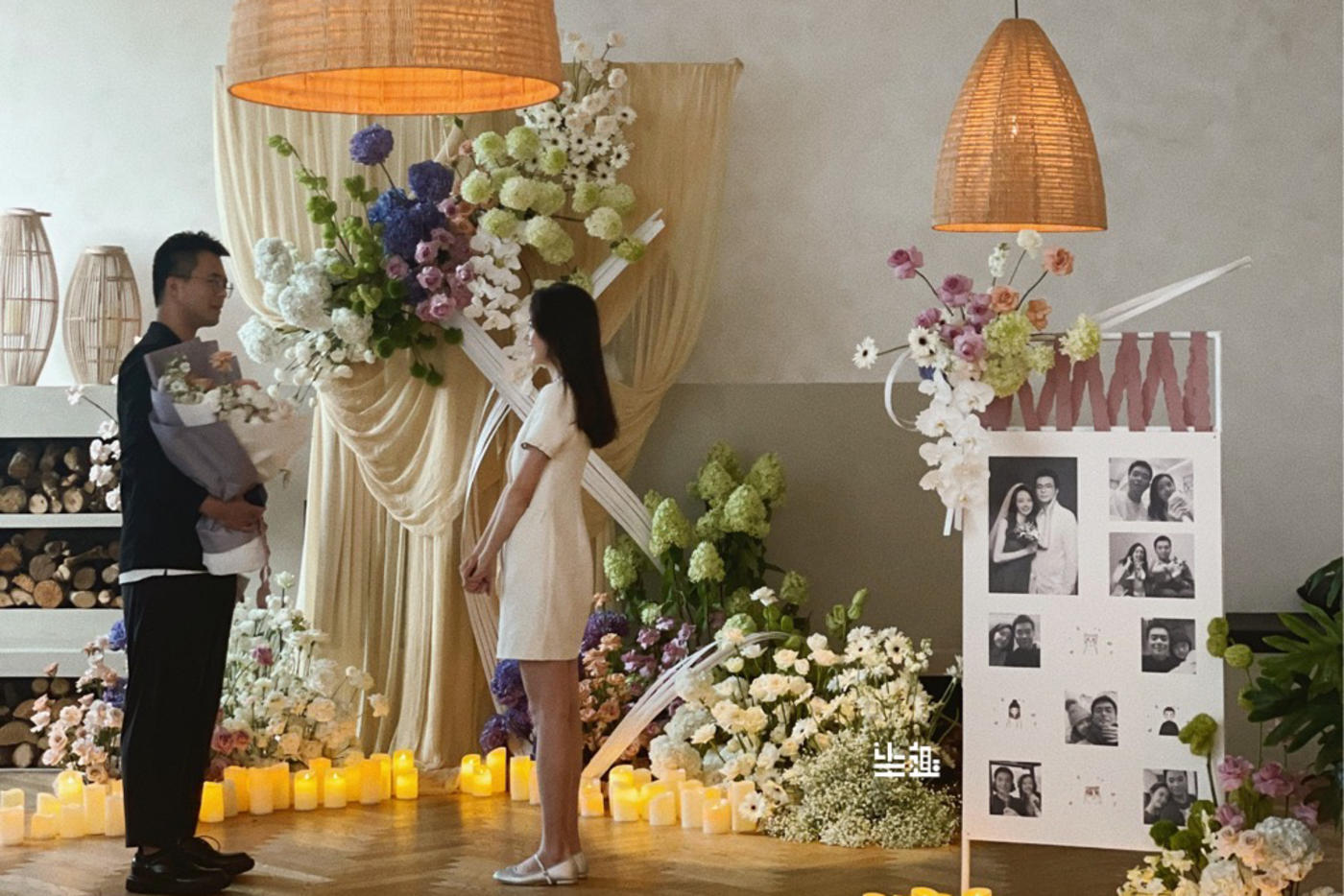 在湖边围着草垛,吹着微风被求婚啦~ 今日份印象最最深刻 问,第一次见到她什么感觉 觉得很漂亮,想拥有[哇] 从校服到婚纱的8年,很美好🙈 本场求婚布置总花费4.17w[更多…]