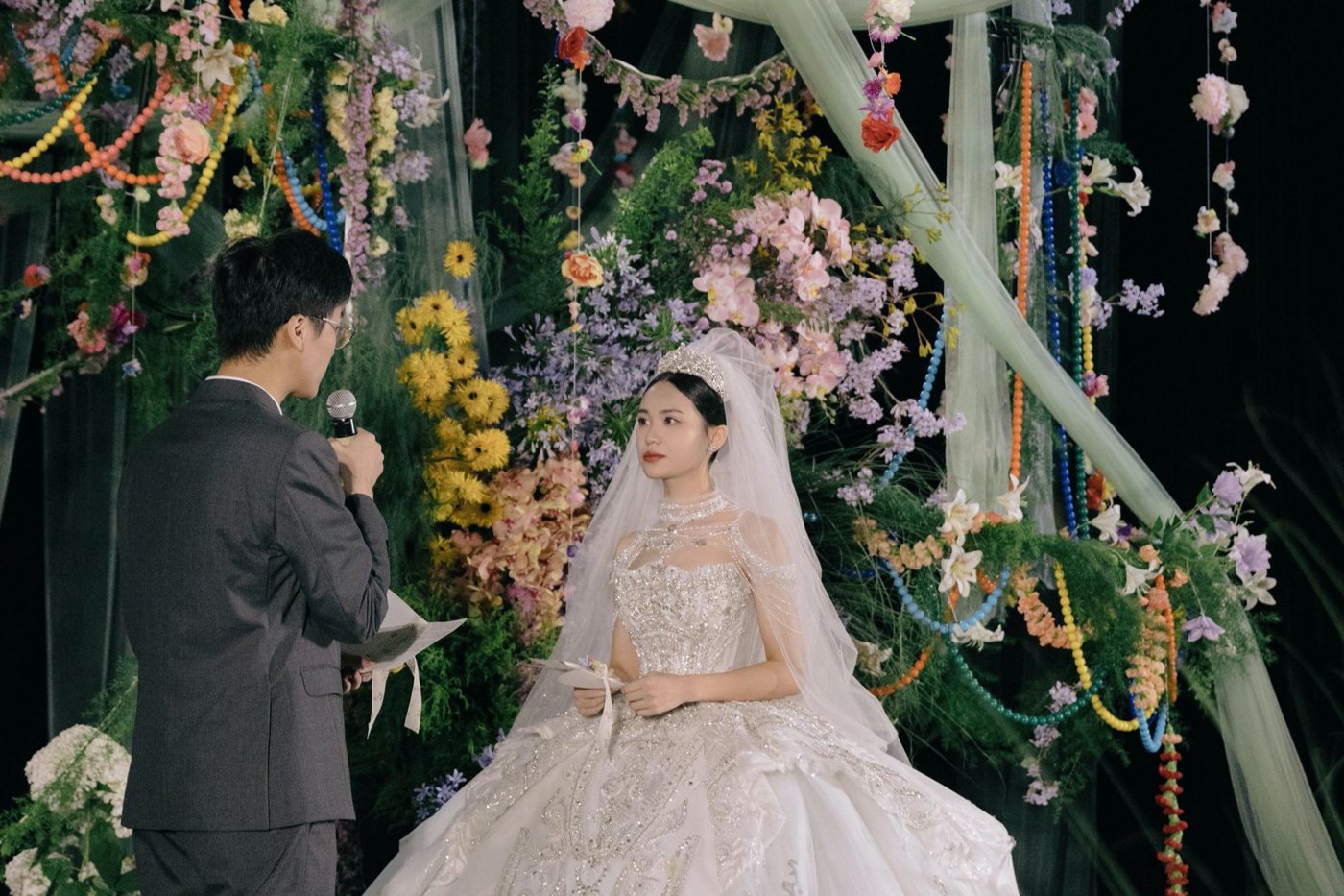 新娘是集颜值才华于一身的清华博士 新郎是礼貌绅士的有为青年王老板 听他们的誓言真的真的太打动人心了[爱心] “不要束缚,不要纠缠,不要占用,不要渴望从对方身上挖掘意义,那是注定要落空的东西,而是我们两个并排站在一起,看看这个美丽的人间” 她说:这是我们在一起的3010天,我们将要定立的誓约,它违背人的天性,遏制我们自私的基因,反对我们天然的享乐主义,但我还是想对你说:我愿意。 他说:现在的我,注视着你,仍有初见你时的怦然心动,没想到八年前遇见的女孩能在今天满心欢喜的嫁给我… 又是为双向奔赴的爱情感动的一天[爱心] #满天星婚礼##成都室内婚礼#[更多…]