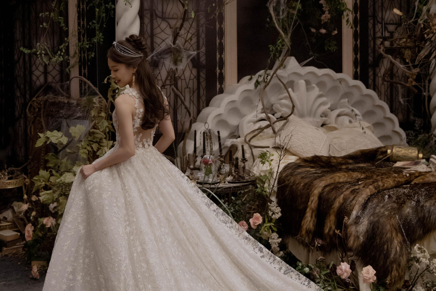 🍂🍂🕸🕸 若有似无的光穿透森林 古藤缠绕的空间 时间遗忘的角落 绝美神秘且虚幻的空间 为我解除魔咒 用电影里有关花的画面 复古感浓厚又华丽的场景 略微暗调的光线 平衡一切视觉的享受 🎬今日电影主题婚礼『美女与野兽』🍂 花絮预告~ 本场婚礼布置花费12w[更多…]