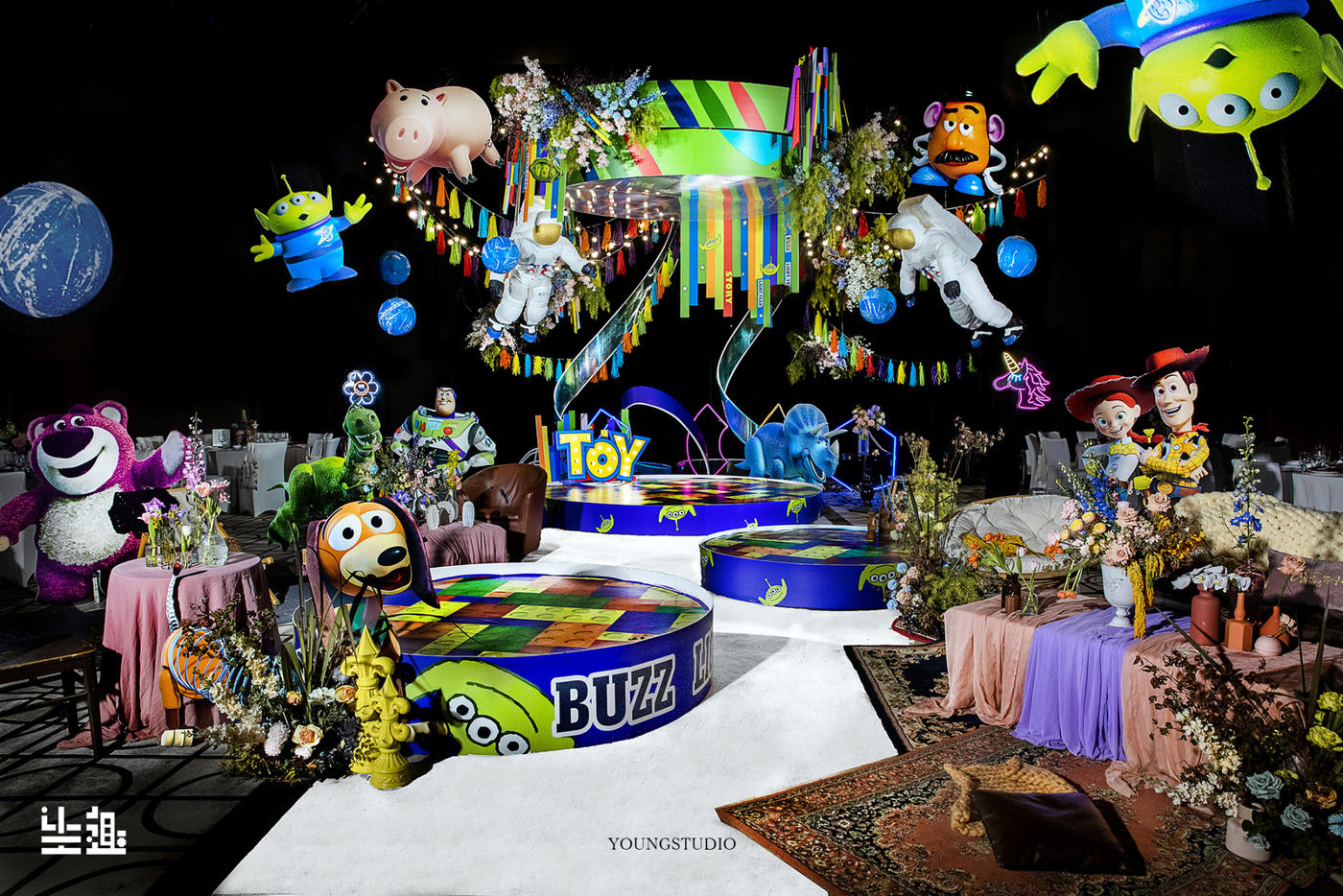 「巴斯光年的太空乐园」 🍡🧊🪁🧘🏻♀️🧩🚀🛺🚖🚍🚃 🪐飞向宇宙 浩瀚无垠 完全能满足童心的一场婚礼派对🥳 胡迪,巴斯光年,蛋头夫妇🥔,三眼仔,翠丝草莓熊,红心马🐎,粉红火腿猪🐷,小奶油弹簧狗🐶,抱抱龙,通通都来到现场啦~ 玩具总动员是我在迪士尼卡通中最最最爱的一个系列了,满满的幸福感❤️ #玩具总动员主题派对# #小众婚礼# [更多…]